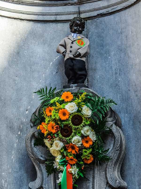 Manneken Pis je mala bronzana statua dečaka koji urinira u bazen fontane i jedan je od najpoznatijih simbola Brisela. Na prvi pogled bizarna statua, ali naravno da se iza nje krije vrlo zanimljiva anegdota. Naime, reč je o dečaku koji je spasao grad od eksploziva i velike katastrofe tako što je urinirao na fitilj i time ga ugasio. Kip ove bronzane statue dečaka ima i odeću za svaki praznik: odelo Deda Mraza, narodne nošnje iz zemalja širom sveta, uključujući i srpsku narodnu nošnju koju su mu obukli 2012. godine i jos dosta toga.
